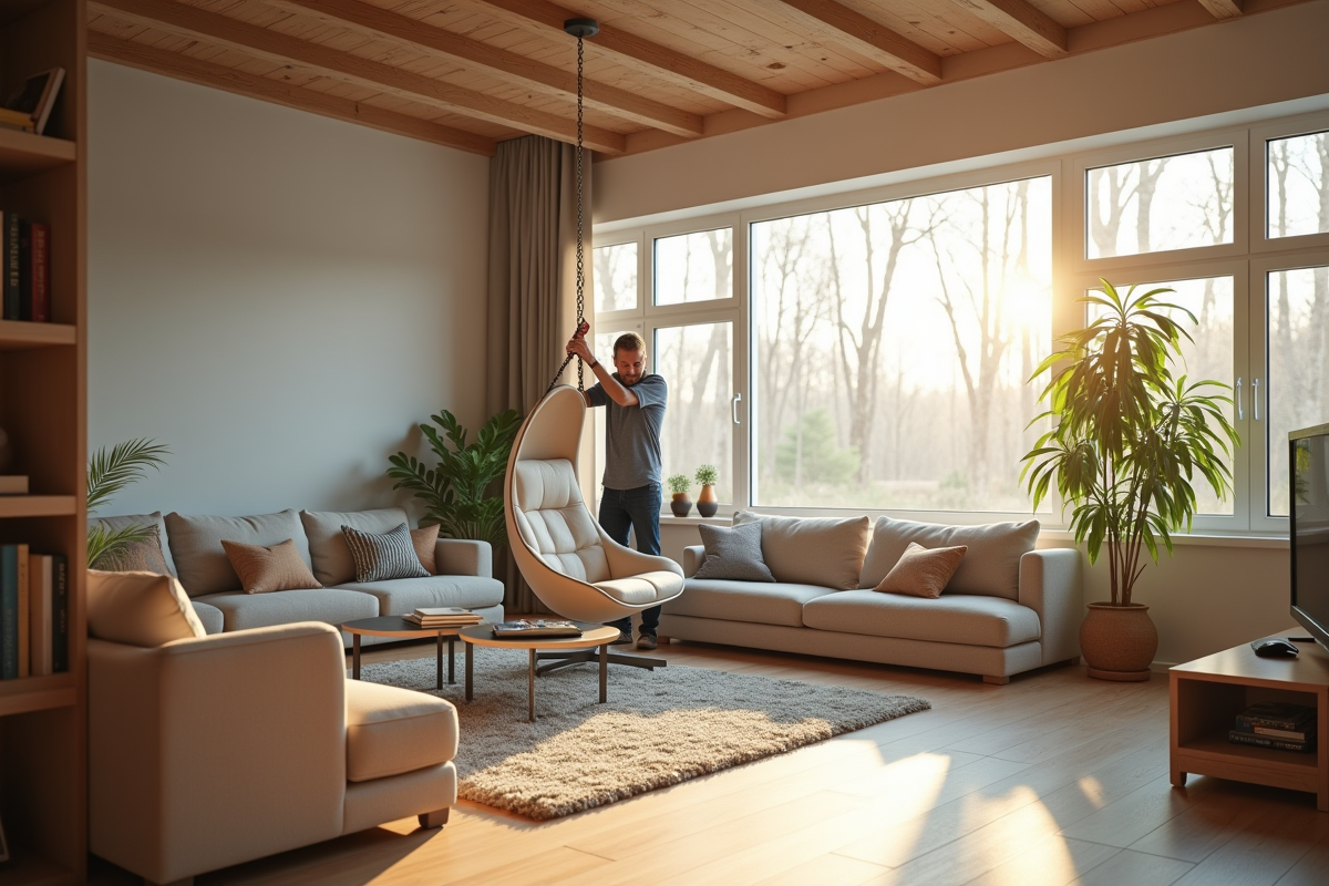 Installer une chaise suspendue, c’est défier la pesanteur à domicile. Mais avant de savourer cette impression de flotter, mieux vaut s’assurer que le rêve ne tourne pas à la dégringolade brutale. L’image du fauteuil qui décroche et du plongeon non sollicité n’est jamais loin, surtout quand la fixation laisse planer le doute.Le fantasme d’un nid aérien se frotte vite à la réalité technique. Les plafonds jouent parfois les trouble-fête, les murs se rebiffent et l’exigence de sécurité s’invite à chaque étape. Quelques astuces précises font la différence, entre acrobatie risquée et douce suspension. Cette fois, la gravité n’imposera pas sa loi.